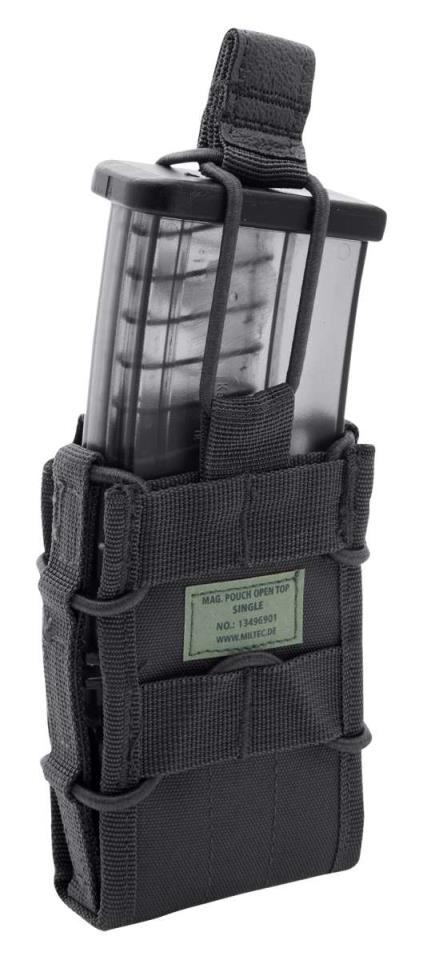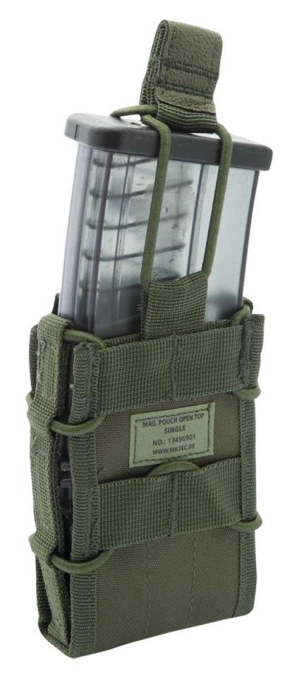La funda de cargador Mil-Tec Molle Open Top Single es para cargadores de 5.56 G36 - AR1 - M4, 7.62 mm x 39 mm AK, M14, FAL e idénticos para un cambio rápido de cargador.