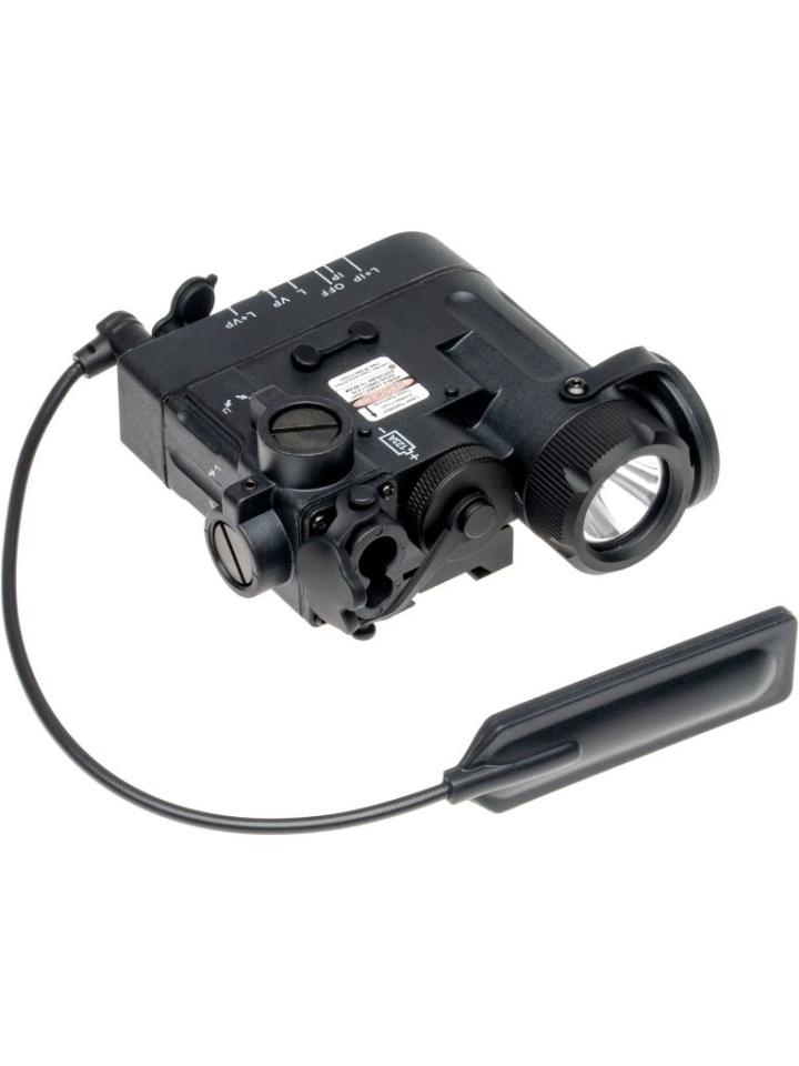El DBAL-eMkII está moldeado por inyección a partir de polímeros y mejora significativamente el aspecto general y la versatilidad de la réplica en condiciones de poca luz. Es compatible con un sistema de interfaz de riel Picatinny estándar. También incluye un interruptor remoto con un pin de 2,5 mm compatible con los indicadores láser fabricados por WADSN.
