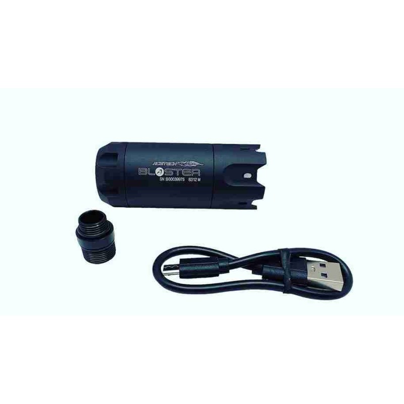 Sin embargo, lo más interesante del Blaster es su diseño agresivo y su función de imitación de llamas. En el extremo del silenciador hay 3 diodos LED que iluminan la bola en vuelo y el gas alrededor del cañón cuando se dispara. El efecto es más evidente cuando se utiliza en armas de gas, ya que se iluminan los restos de gas después del disparo. El efecto también es visible cuando se utiliza en armas eléctricas, aunque es un poco más débil.