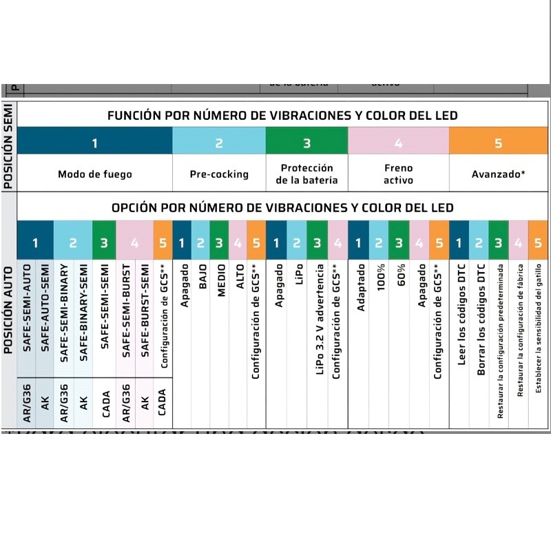 Modo de disparo: Semiautomático / Totalmente automático / Seguridad