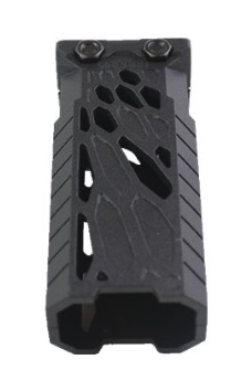 Empuñadura táctica negra con montaje en riel Picatinny. Fabricada en polímero de alta densidad. Incluye 2 tornillos y tuercas de montaje.