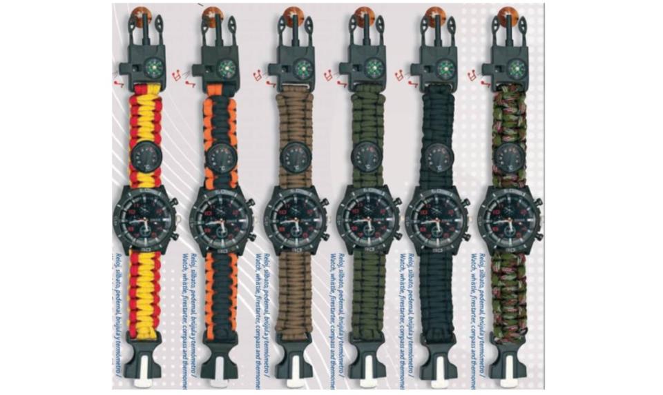 Accesorios: silbato, pedernal, brújula y termómetro.