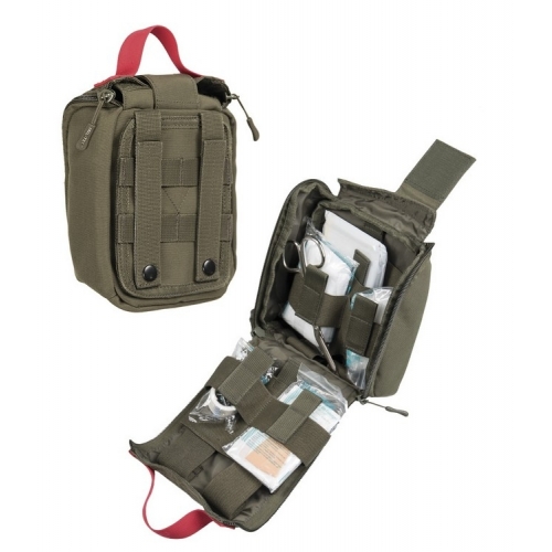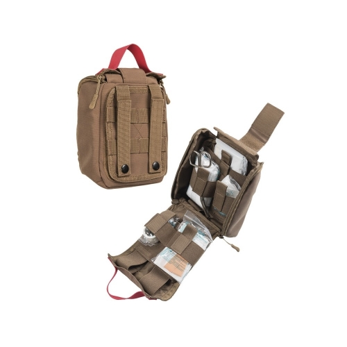El botiquín IFAK (Individual First Aid Kit) militar dispone de una característica clave en este tipo de botiquines que es el acceso al compartimento interior con una sola mano realizando un fuerte jalón con la cinta roja.