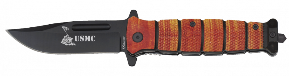 La caja contiene: abrelatas y abrebotellas, llaves, sierra, tenedor, cuchara, 2 puntas de destornillador, set de costura, 2 fósforos, set de pesca (anzuelo, plomo y alambre), dos modelos de cuchillos, lápiz, pinza. raspador de escamas y el mango.